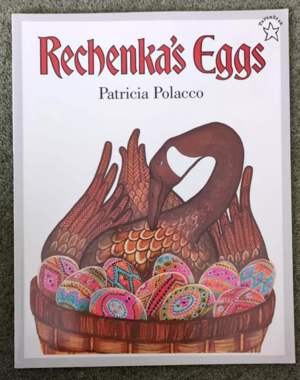 Closer to Easter we read Rechenka’s Eggs. Then we all had a go at blowing eggs and painting the shells.